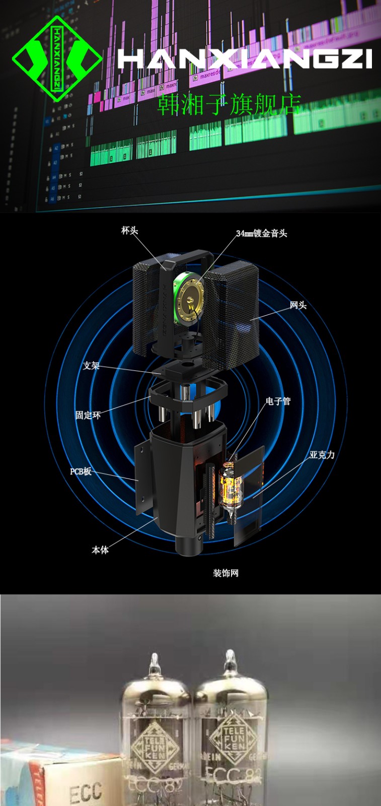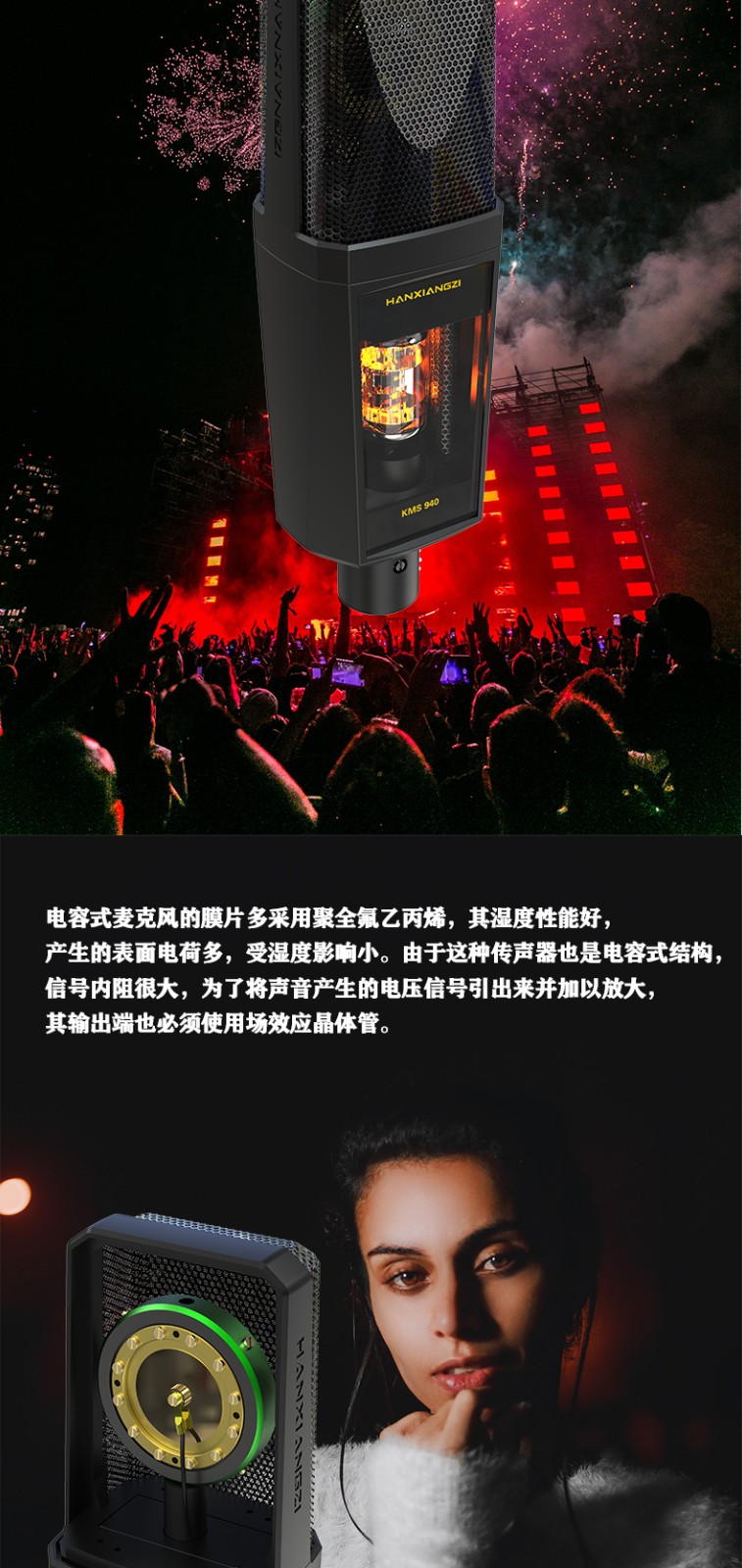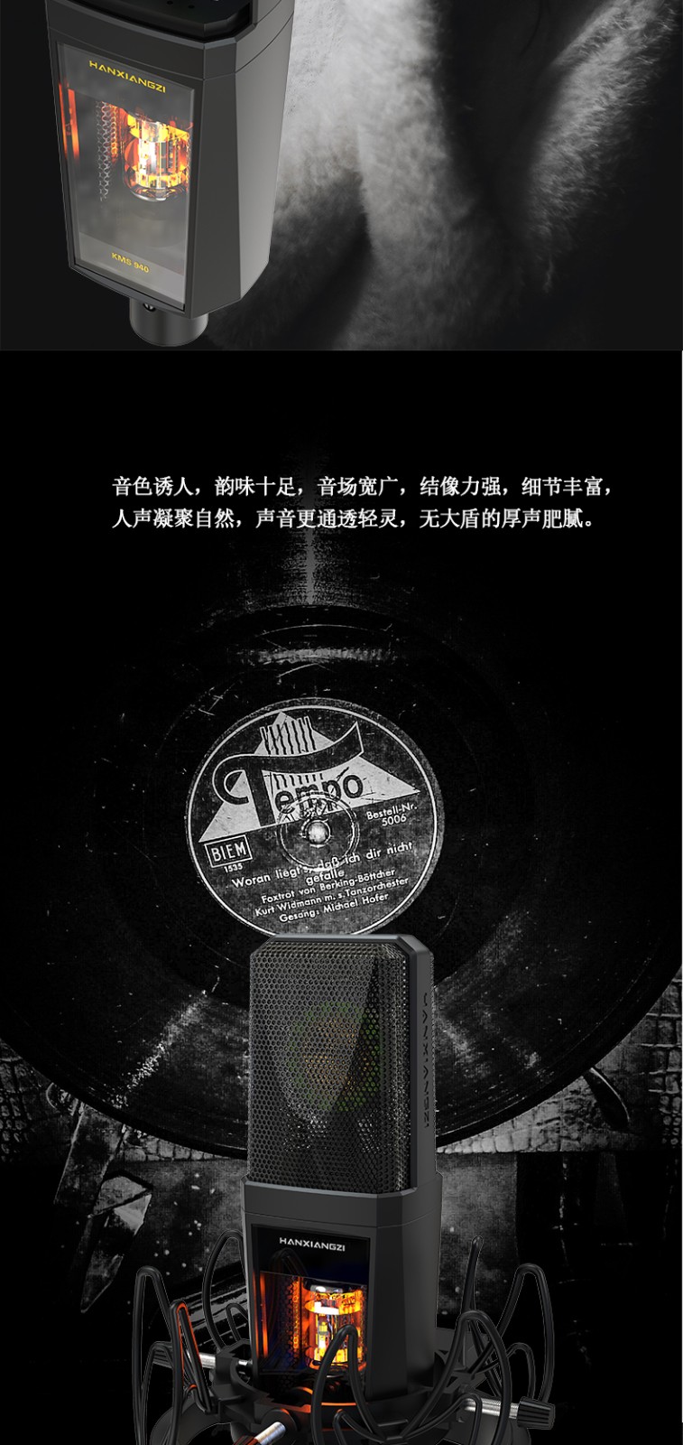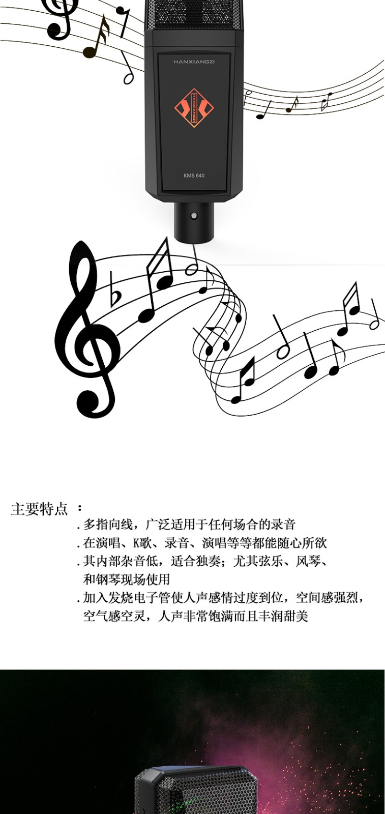 產(chǎn)品特性 ·雙面鍍金大振膜音頭 ·內(nèi)置真空電子管線路,音色更加溫暖柔和靈敏 配置專用防震架,具有出色的隔震性能配置手提鋁合金箱,方便用戶攜帶和存放·麥克風各項功能控制均設(shè)在專用幻象電源上,實現(xiàn)功能遙控適應(yīng)不同拾音場合具有較高的聲壓電平處理能力,適合拾取各種不同類型的音源較低的自生噪音表現(xiàn),滿足專業(yè)級別的錄音需要